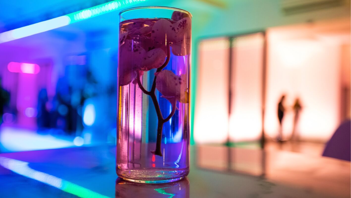 An aura-reading photo booth, based on the 1970s camera built by Guy Coggins that captures the electromagnetic field (aura) around someone, tells their story through colors. Cold-rolled ice cream, appetizers and cocktails with glowing ice cubes enhanced the sensory experience.